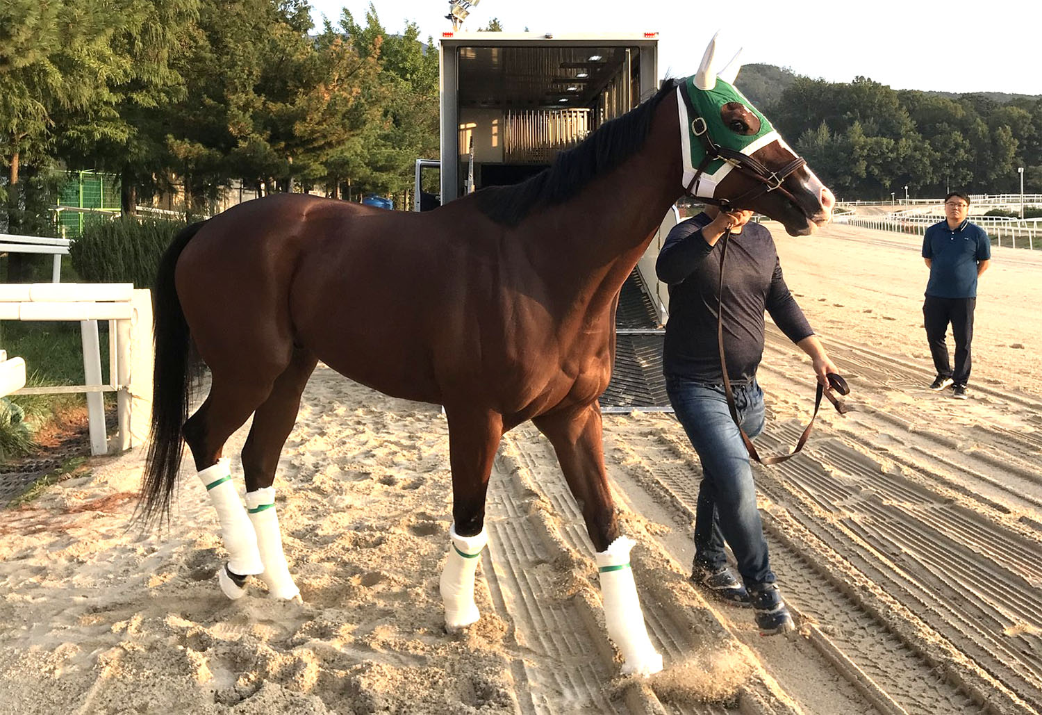 UAE 두바이월드컵 카니발 원정에 나선 한국마사회 대표 경주마 블루치퍼(Blue Chipper)가 6월 29일 아침 무사히 귀국했다.